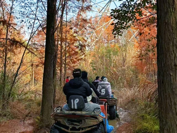 短暂的休整后,下午的时光充满了速度、策略与浪花的激荡。部分成员选择体验越野车的驰骋,在颠簸与转弯中感受风与激情;另一部分则投身于紧张刺激的真人CS对战,于“丛林”掩体间演练战术与信任;亦可选择皮划艇,挥桨破开粼粼波光,在协作平衡中领略水上闲趣。自由活动时段,有人继续探索未尽的项目,有人则漫步园中,享受片刻宁静。